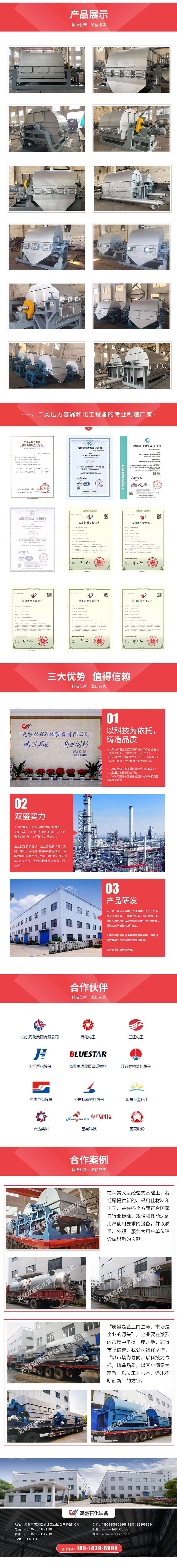 無錫雙盛石化裝備有限公司占地面積30000㎡,辦公區(樓)面積3000㎡,注冊資金2800萬,工程技術人員19人。企業依靠科技進步,企業管理和“兩個文明”建設,保持經濟的持續穩定增長,每年為用戶配套結(切)片機200多套,換熱設備2萬多平方,各種非標及反應設備幾百臺套。